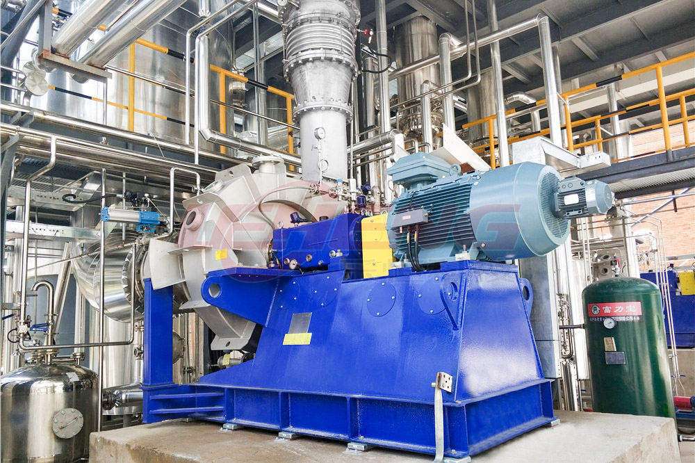 由于煙草提取液是熱敏性物料,因此對于蒸發(fā)溫度有較嚴格的要求,同時由于沸點升較高,離心風機無法滿足系統(tǒng)運行要求。