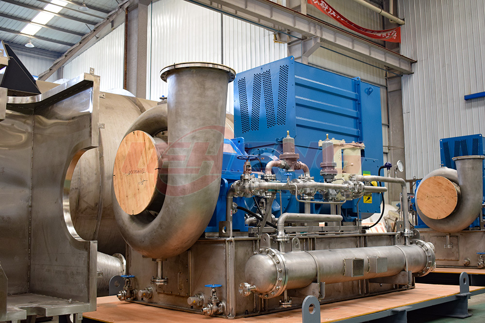 該項目配套的壓縮機為樂恒研發生產的增速箱式蒸汽壓縮機,壓縮機溫升20℃。增速箱式離心式壓縮機由電機與增速齒輪箱配合進行驅動,通過精密的葉輪設計可使壓縮機工作效率可以達到85%以上。